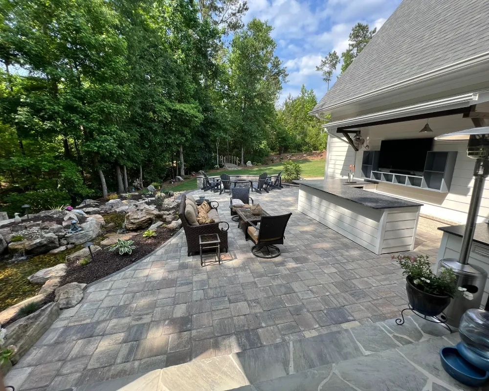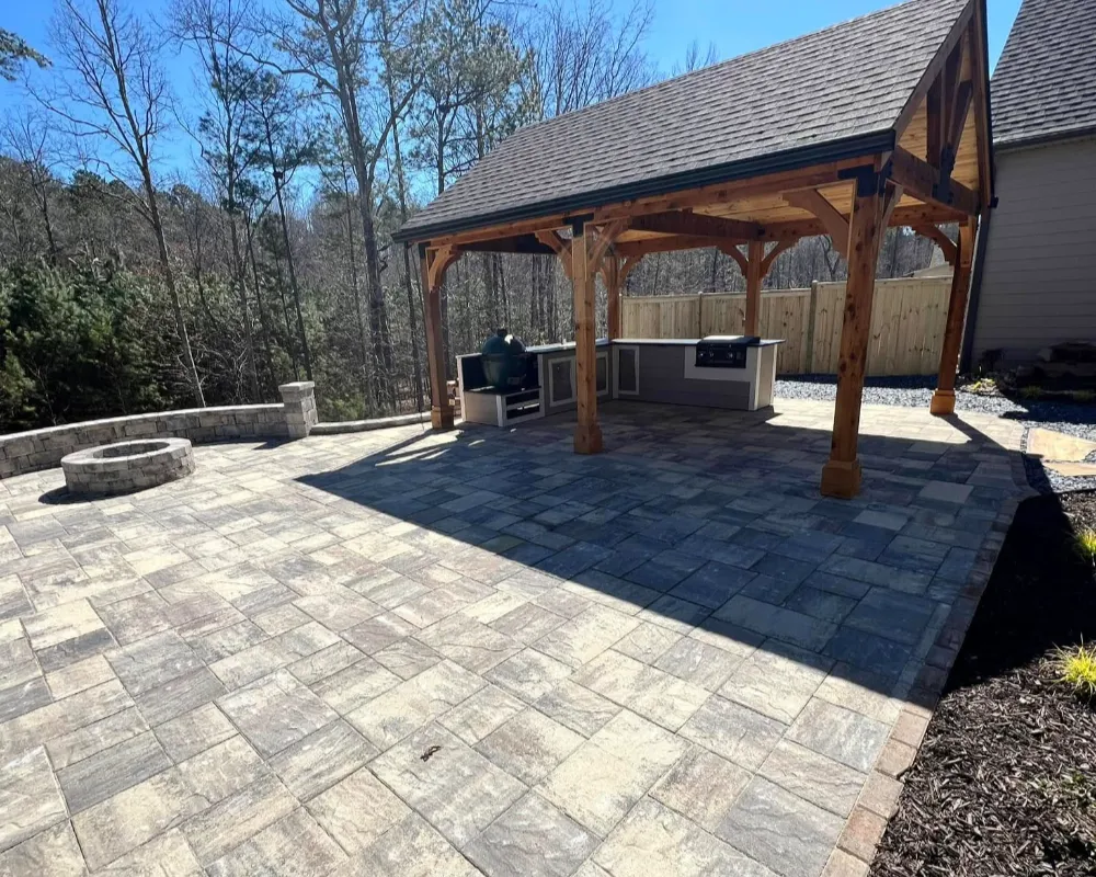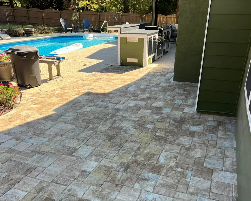 We design and install custom paver patios for homeowners throughout Fayette and Coweta Counties. Whether you want a simple backyard gathering space or a large patio surrounding your pool, we handle everything from layout and grading to final installation.